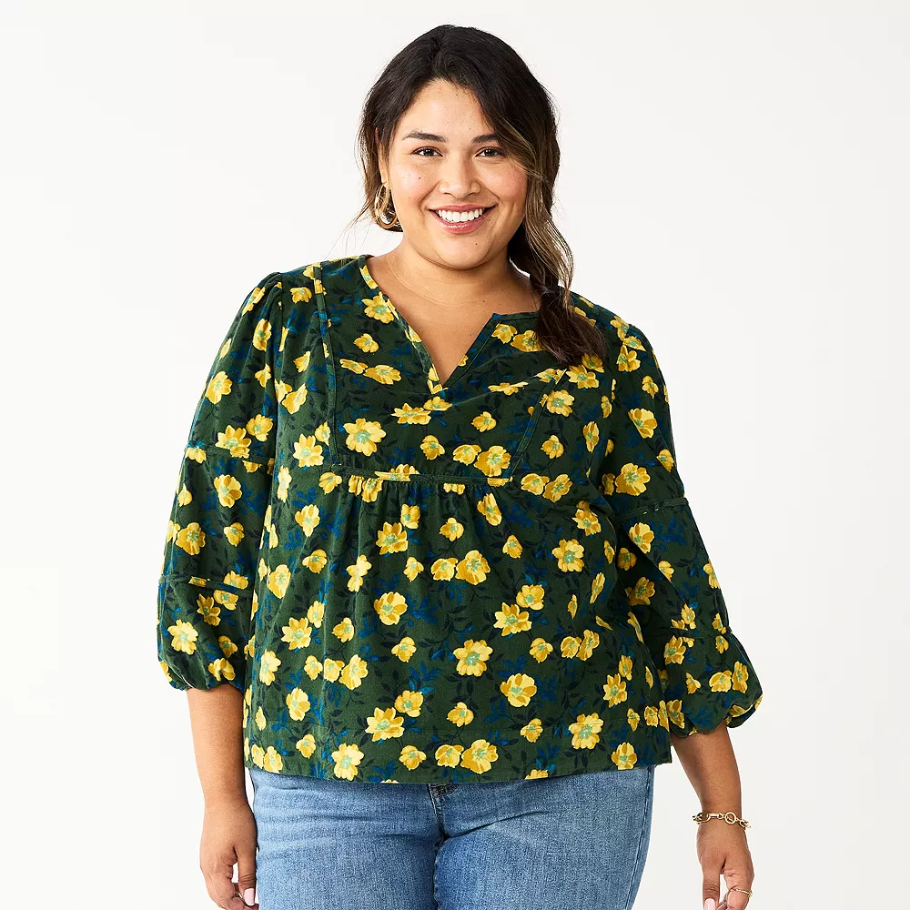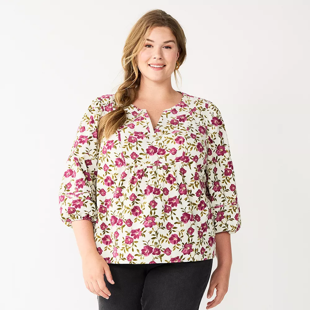 Plus Size Sonoma Goods For Life® Notchneck Long Sleeve Top
